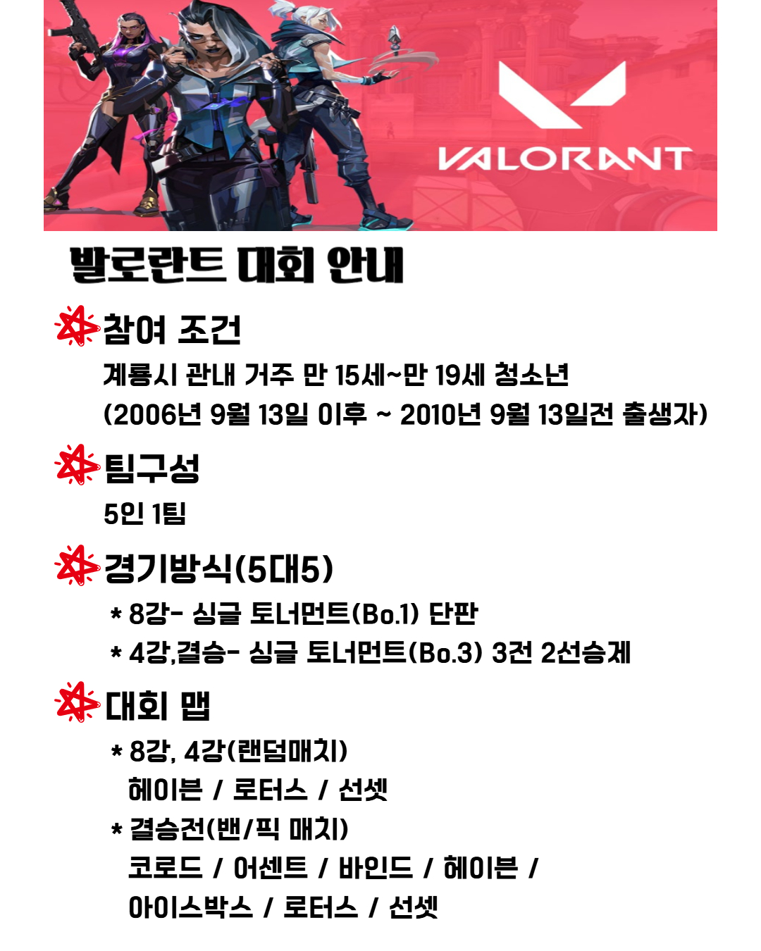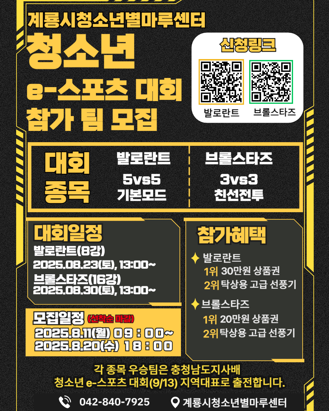🖥️ 우승혜택:소정의 상품(홍보지 참조), 충청남도지사배 청소년 e-스포츠 대회 계룡 대표 출전권